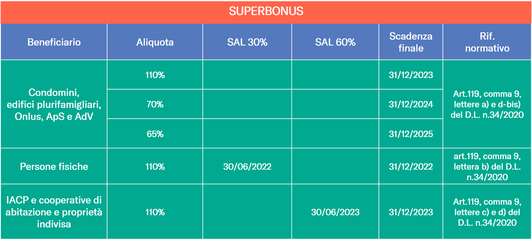 Questa tabella sintetizza i nuovi termini per il Superbonus 110.